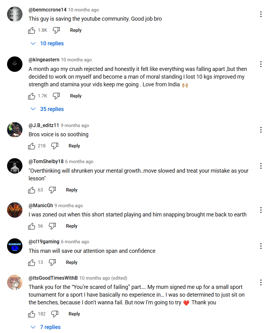 I also watched a YouTube short by Jak Piggott titled “Still Under 20? You Need To Hear This…” In it, he uses a foggy morning as an analogy for how life can feel unclear and scary when you don’t know what’s ahead. His deeper message was about courage, that even when you can’t see your full path, taking small steps forward each day is what clears the fog as your eyes will adjust. The comments under the video showed how this idea connected with people. Many shared their own fears about the future or how they felt stuck, but his words seemed to calm them. It felt like a quiet corner of YouTube where people were just trying to move forward together, one small step at a time.